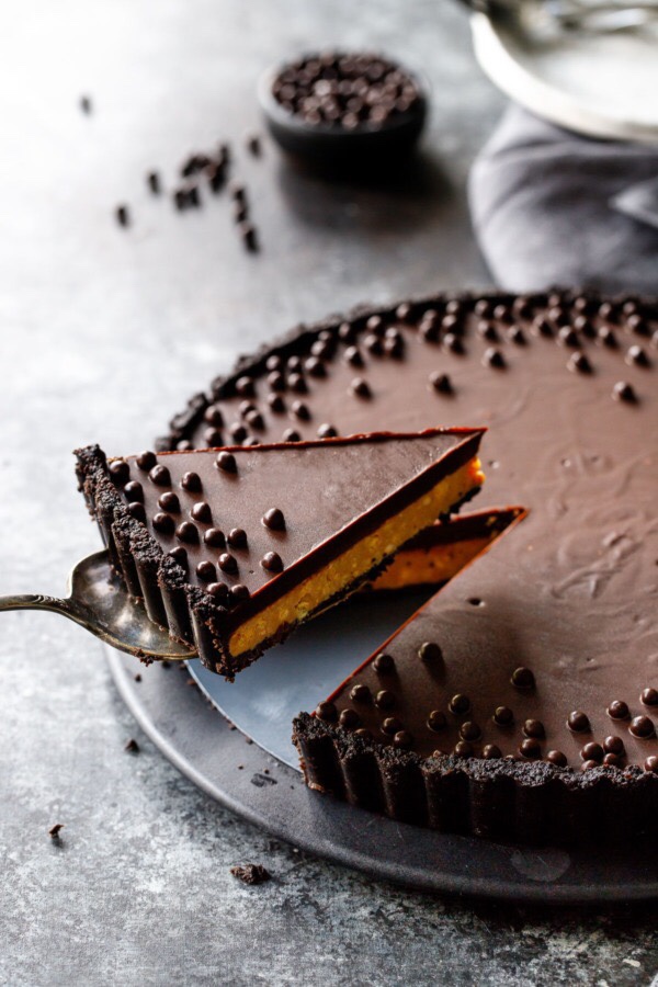 Recommend keeping the tart chilled until ready to slice and serve. Your ganache won’t be beautifully shiny when it comes out of the refrigerator, but a matte finish is better than a too-soft filling.